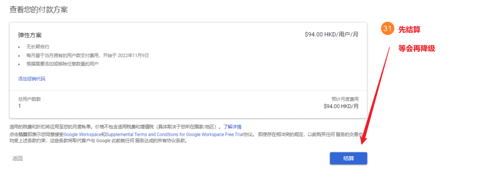 34.绑定完信用卡信息后,我们去降级服务套餐。没必要花的钱,我们一份都不要多花!